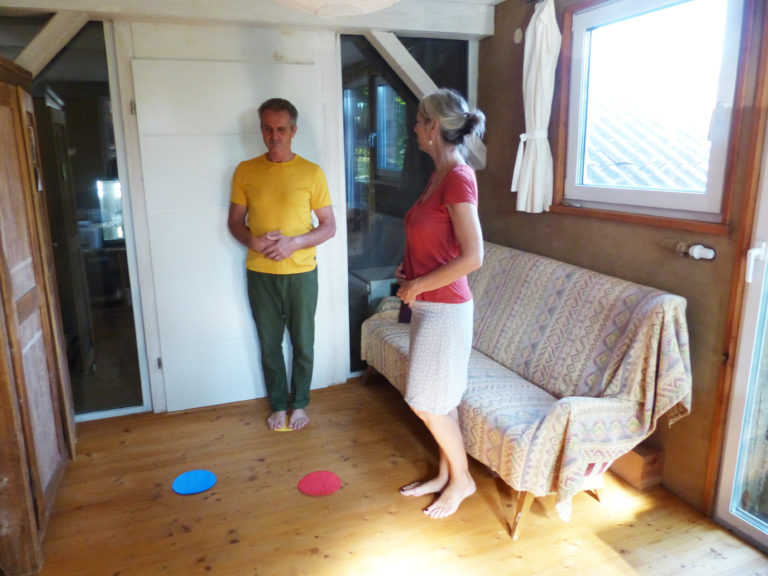 Der Coachee geht nacheinander auf den Bauch-, Herz- und Kopf-Platz und nimmt die jeweiligen Körper-Erlebnisse wahr. Dabei begleite ich und lade ein, die oft unbewussten Botschaften zu übersetzen, innere Anteile zu ordnen und zu klären, wo ein Bedürfnis unterdrückt oder übersteuert wird.